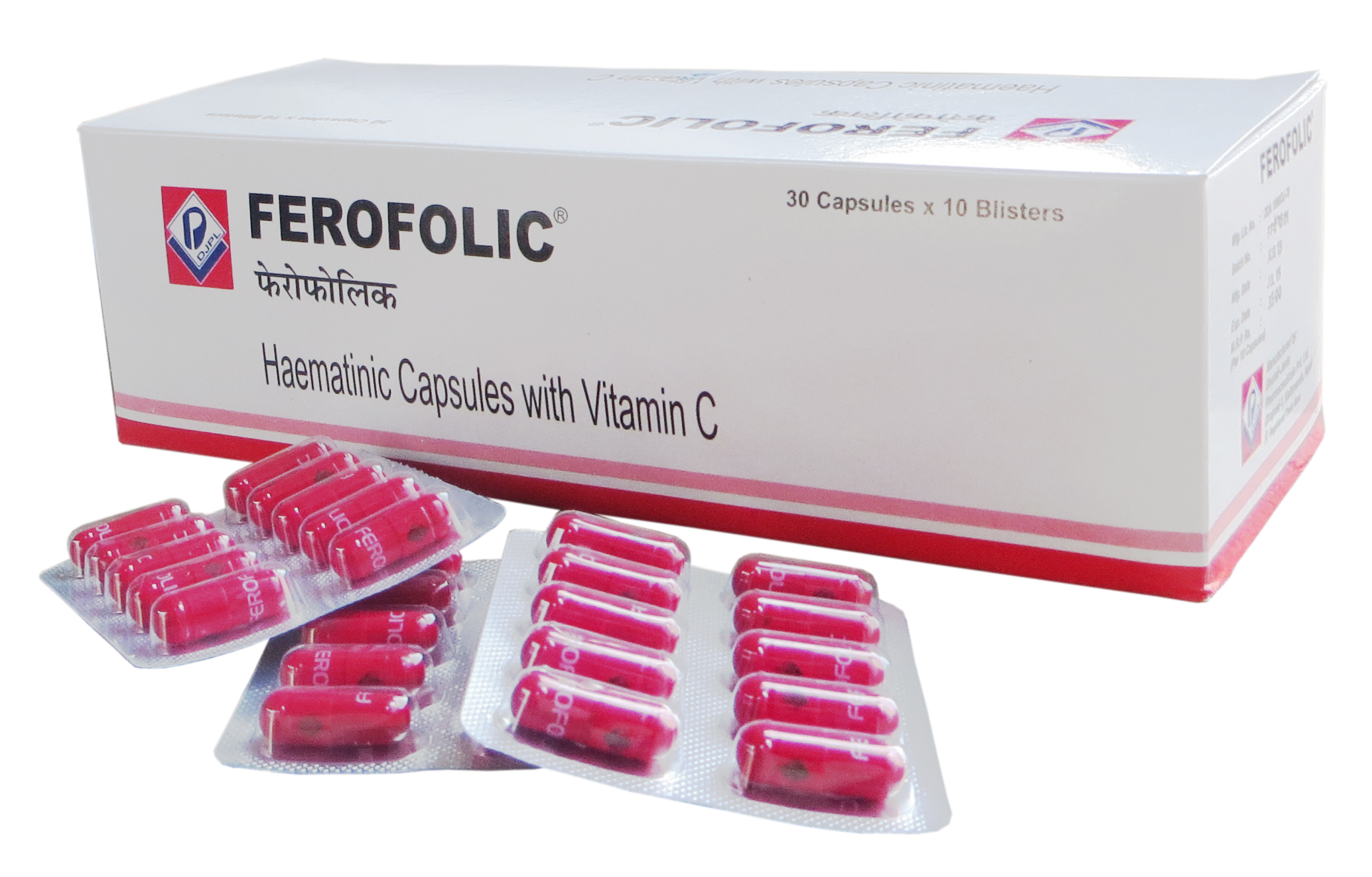 Ferrous Fumarate, Vitamine C, Pyridoxine, Folic Acid, Cyanocobalamin.