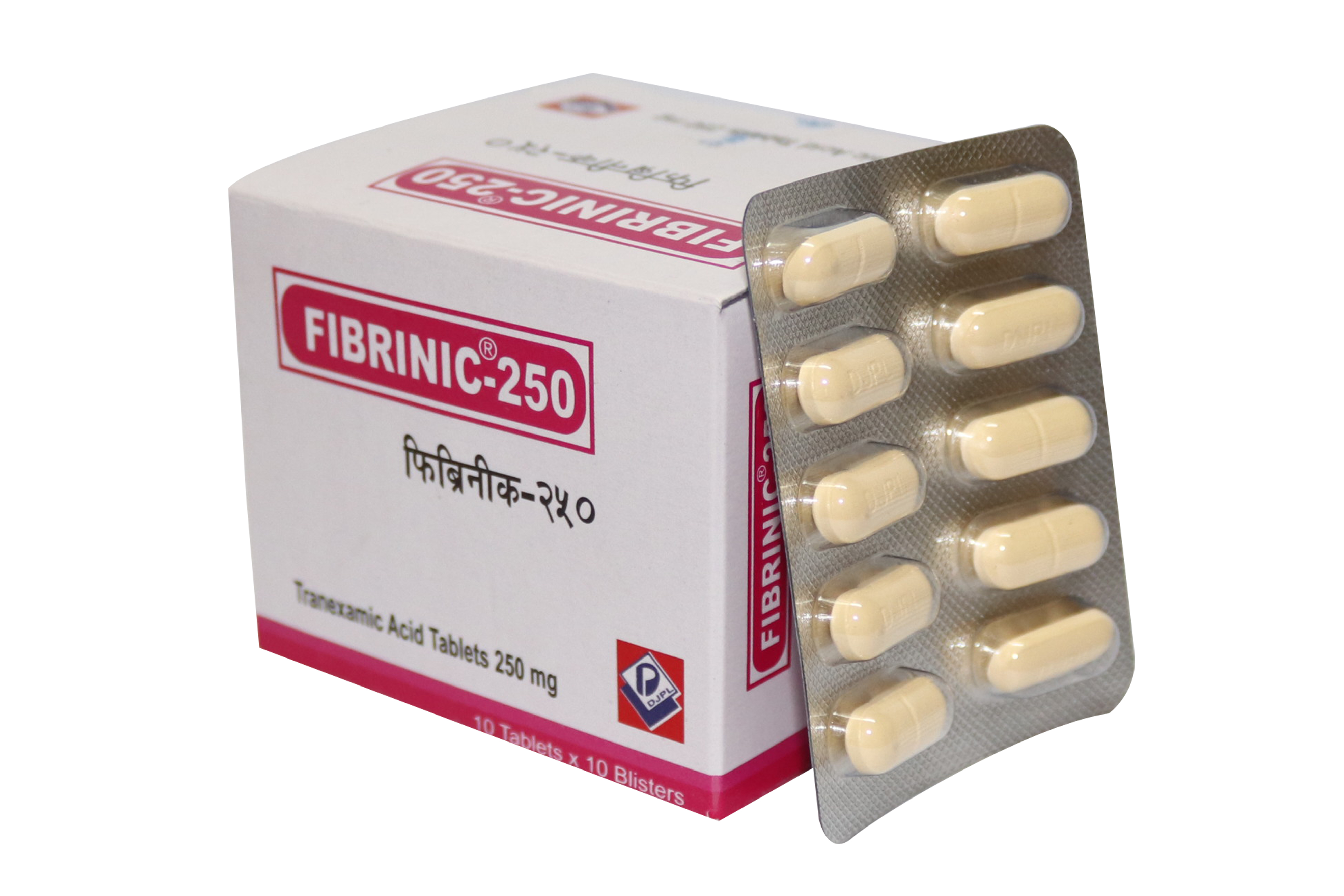 Fibrinic® 250 Tablet: Box containing 10 × 10 tablets in blister pack.