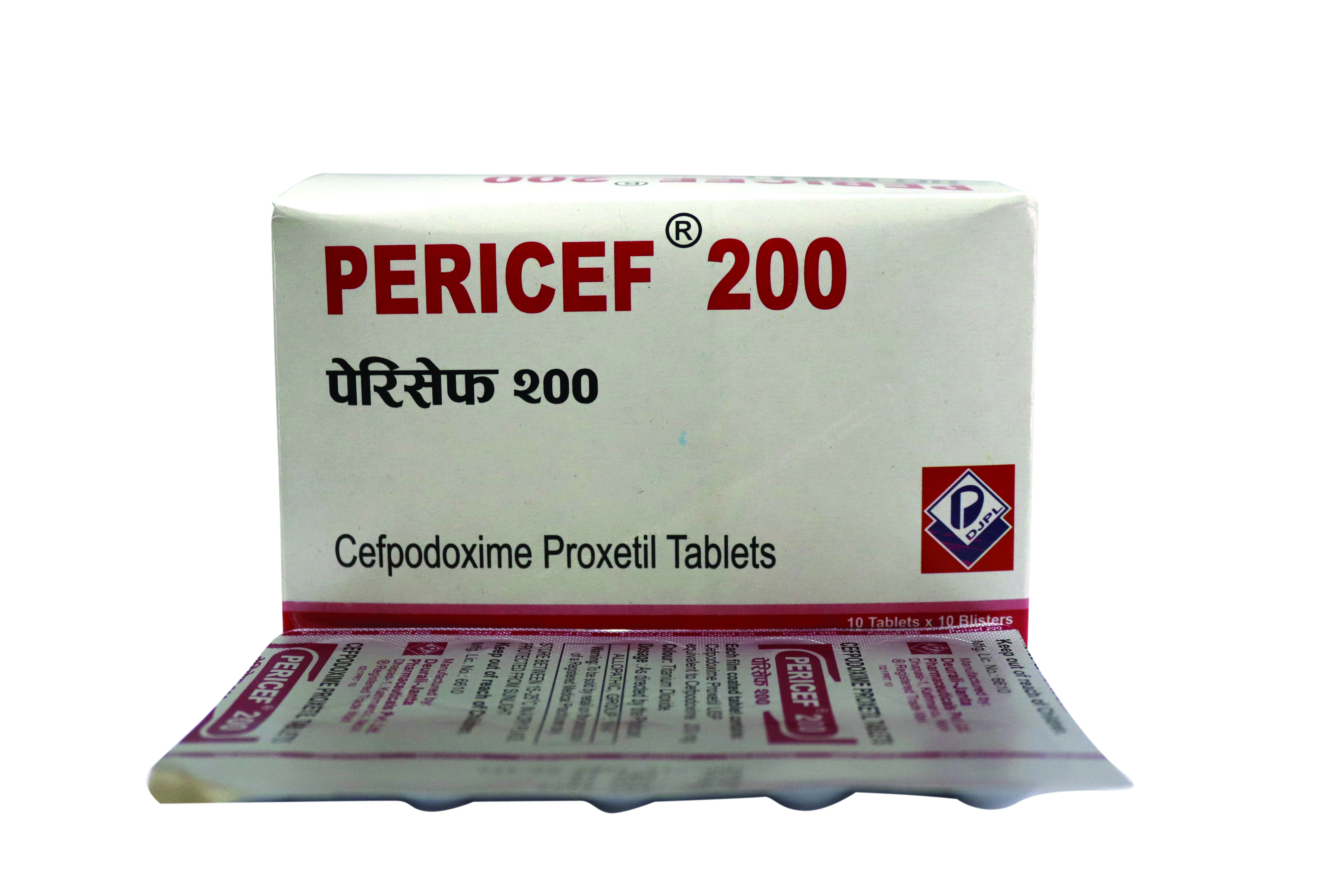 Pericef® 200 Tablets: Box containing 10x10 Tablets in Alu-Alu blister pack
