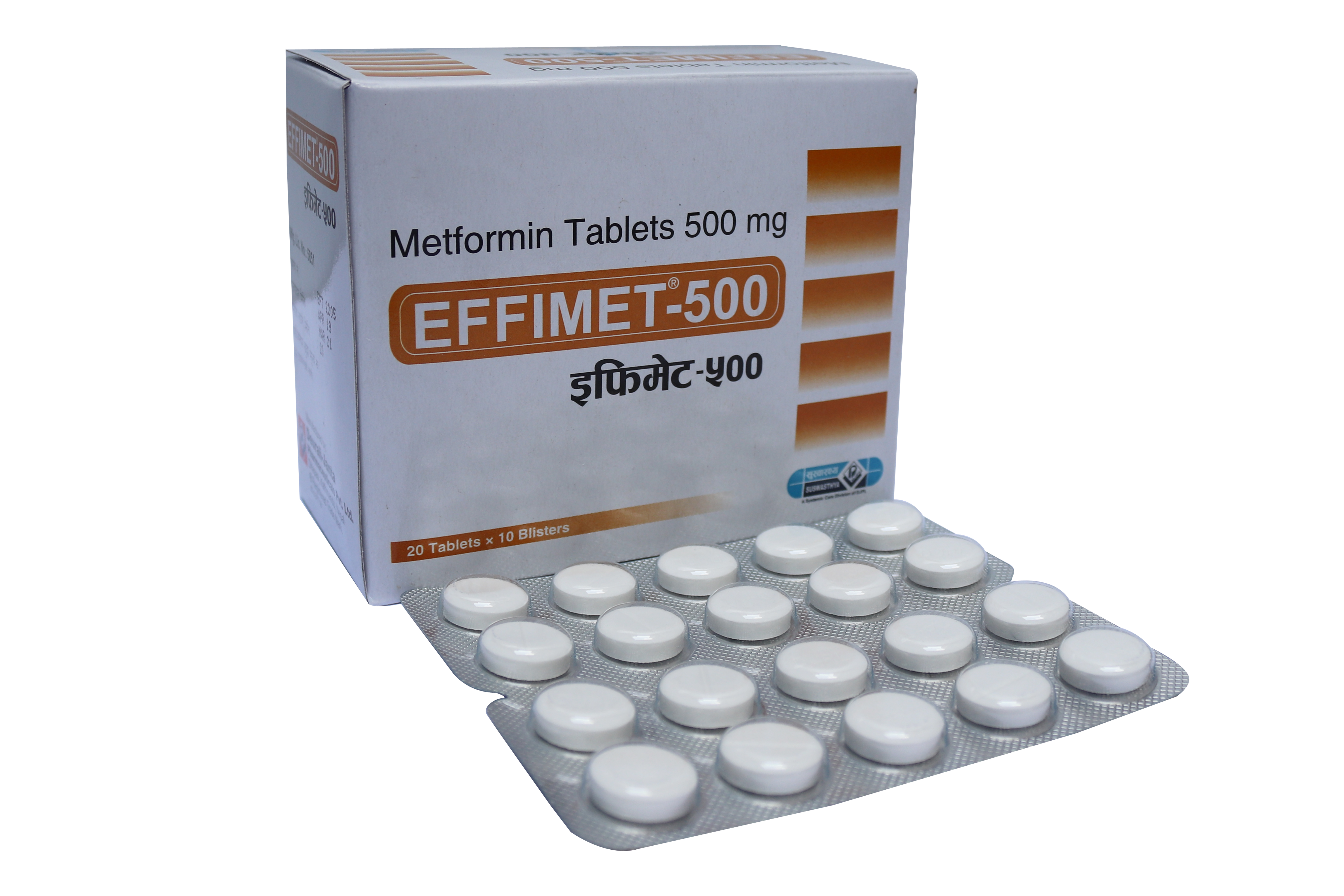 Effimet® 500: Box containing 10 x 20 tablets in blister pack.